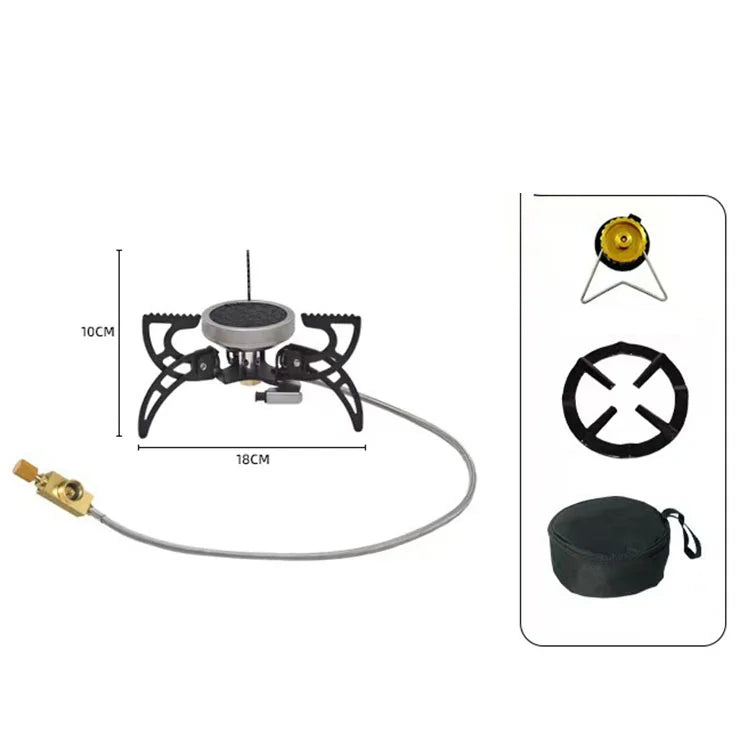 - Siła ognia: skoncentrowana moc ognia 3000 W, płyta grzewcza o strukturze plastra miodu, wysoka sprawność cieplna, niskie zużycie energii, możliwość smażenia, smażenia na patelni, gotowania, duszenia i innych potrzeb kulinarnych.
