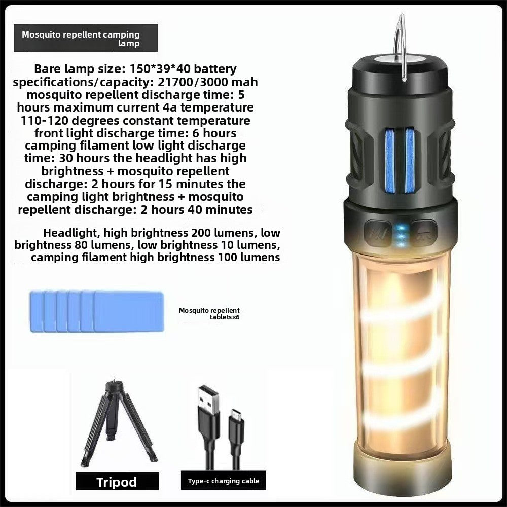 Outdoor Portable Camping Light LED Multi-Function Mosquito Repellent Camping Lantern Type-C Charging Portable Magnetic Suction Tripod Tent Ambience Light